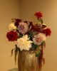 Het boeket Autumn is een rijk en volumineus arrangement met hangende takken en veel dahlia’s, wat zorgt voor een speels en luxe effect. De warme kleurencombinatie van bordeaux, rood, beige en grijstinten geeft het boeket een natuurlijke, herfstachtige uitstraling. Een echte eyecatcher in een vaas en perfect om warmte en sfeer toe te voegen aan je interieur.
