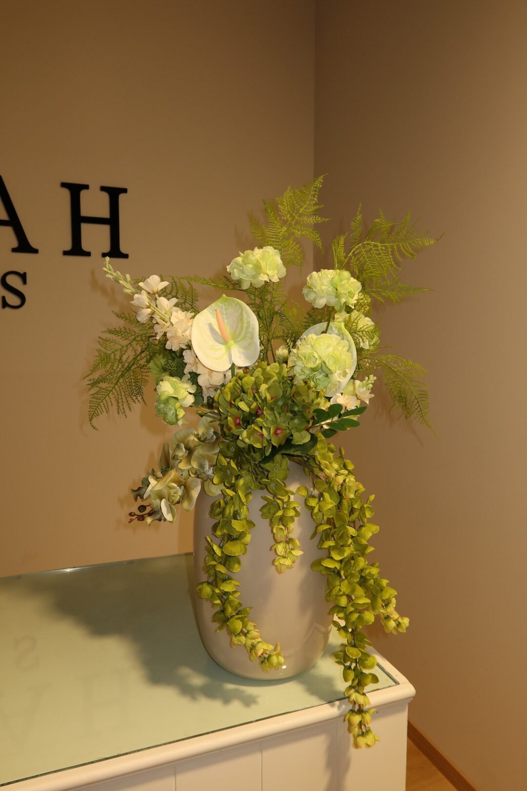 Boeket Ivory & Green is een stijlvol en tijdloos arrangement waarin zachte ivoortinten samenkomen met weelderig groenblad en sierlijk hangende takken. Dit boeket straalt rust, verfijning en natuurlijke elegantie uit  perfect voor zowel moderne als landelijke interieurs.