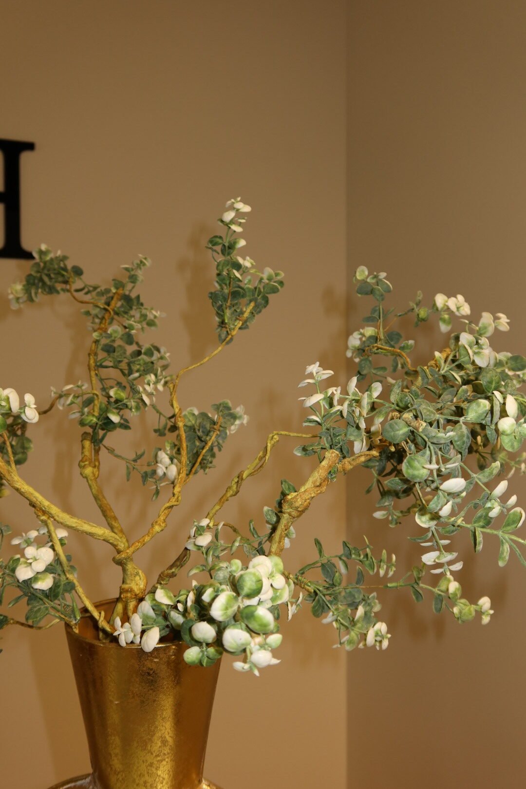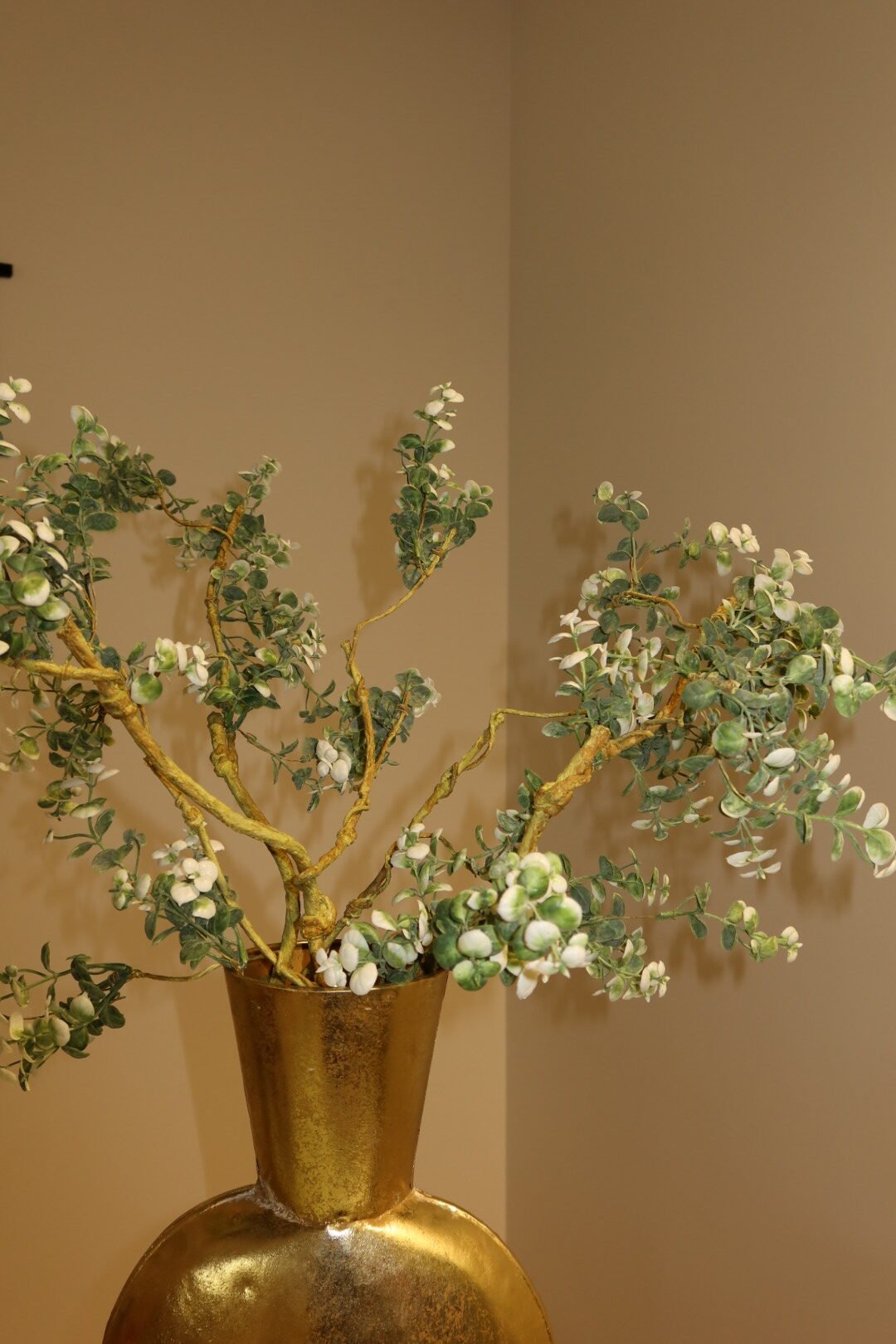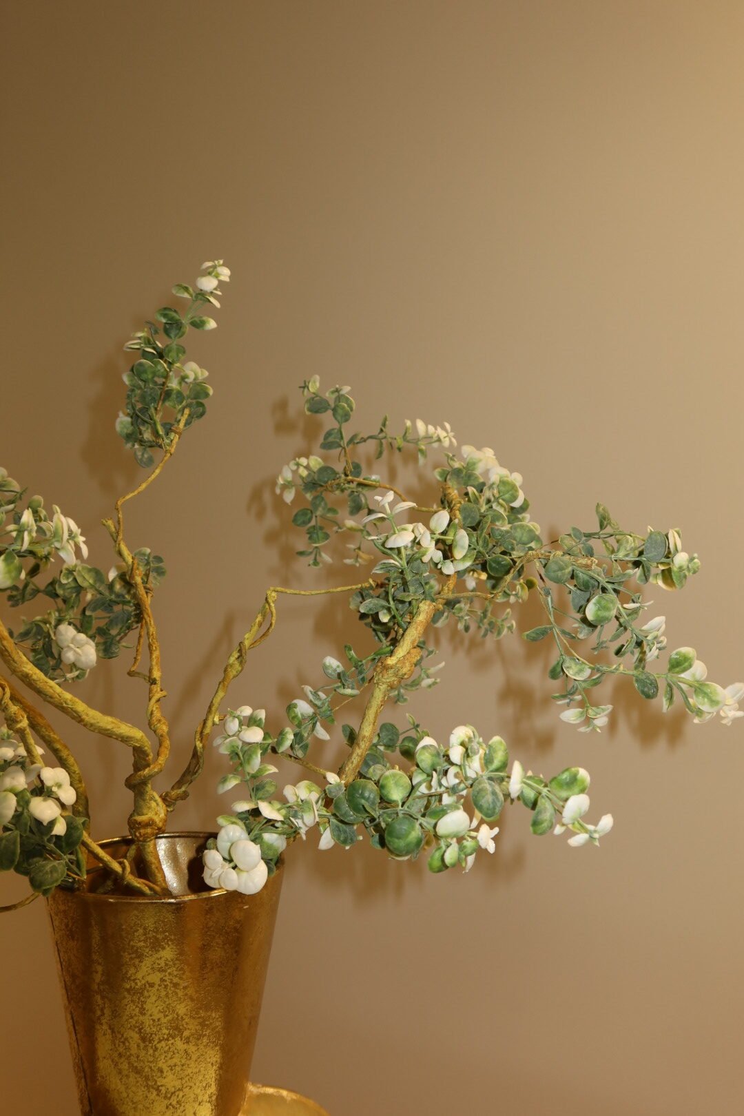 Het houtlook geeft dit decorstuk een authentieke, natuurlijke uitstraling en past moeiteloos in zowel moderne als landelijke interieurs. De verfijnde eucalyptus bladeren zijn realistisch vormgegeven en blijven altijd mooi zonder onderhoud.